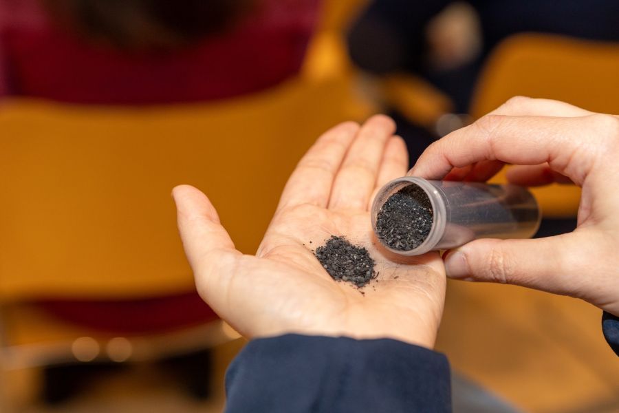 En condiciones operativas óptimas, POLYBRIS ha logrado obtener en torno a 20 kg de sólido carbonoso (“char”) por cada 100 kg de residuo plástico tratado mediante procesos termoquímicos desarrollados en los laboratorios de ITG en Vigo. Este material presenta un alto potencial como filtro natural para la retención de contaminantes presentes en aguas costeras y efluentes de actividades marítimo-pesqueras, como piscifactorías o plantas de procesado de productos marinos.