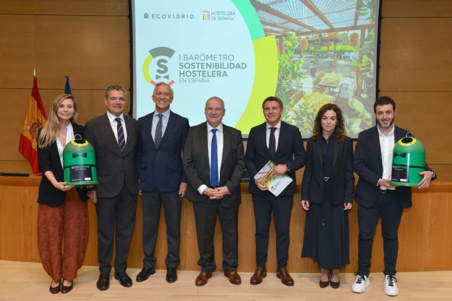 Ecovidrio, el único SCRAP especializado que gestiona sobre el terreno la recogida selectiva y da respuesta a la sostenibilidad de los envases de vidrio desde el origen y Hostelería de España, con el apoyo del Ministerio de Industria y Turismo, representado por Jordi Hereu, presentó ayer el ‘I Barómetro de la Sostenibilidad Hostelera en España’, la primera radiografía de la sostenibilidad hostelera en nuestro país que analiza el grado de compromiso ambiental del sector hostelero, las tendencias más relevantes en materia de sostenibilidad y los retos pendientes para avanzar hacia un modelo más circular y sostenible en la hostelería española.
