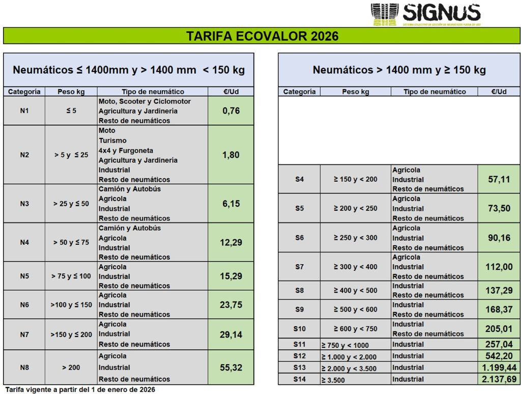 La tarifa del Ecovalor 2026 ha quedado fijada de la siguiente manera:
