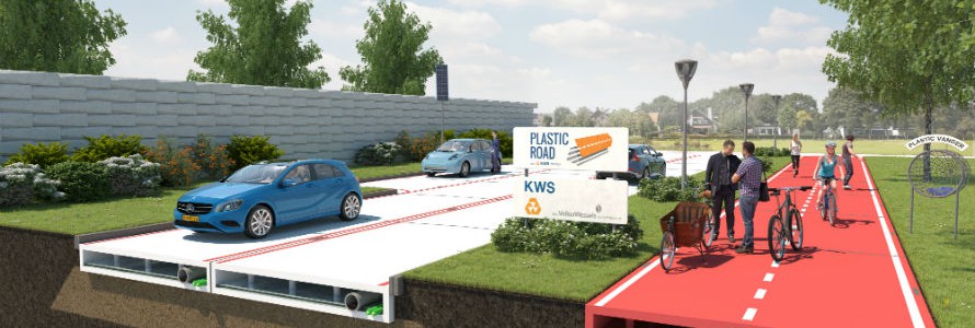 El concepto de carreteras de plástico consiste en la construcción de módulos ligeros a partir del reciclaje de residuos plásticos.